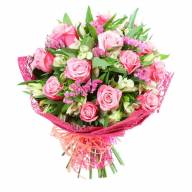 Красивый букет, состоящий из белых альстромерий, роз и декоративной зелени – сокровенная мечта каждой женщины. В нем переплетается нежность с невинностью, затаенная в глубине чувственность с зарождающейся страстью.
